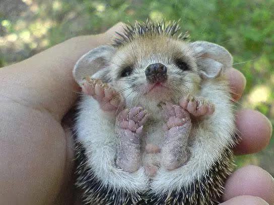 刚出生的小刺猬四脚朝天,一脸无辜的表情让人爱不释手啊。