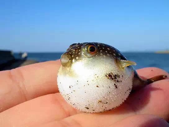 圆嘟嘟的它就是河豚鱼了,虽然体内有毒性,但是刚出生的小河豚被捧在手心上的感觉应该很棒吧。